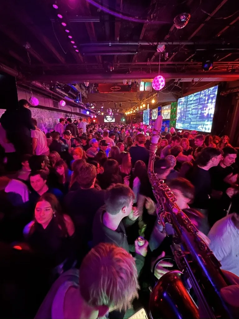 From club anthems to funky riffs, sax lines soared over the crowd as hands went up, drinks clinked, and the dance floor never stopped moving. People came to party — and they got a full-throttle celebration.